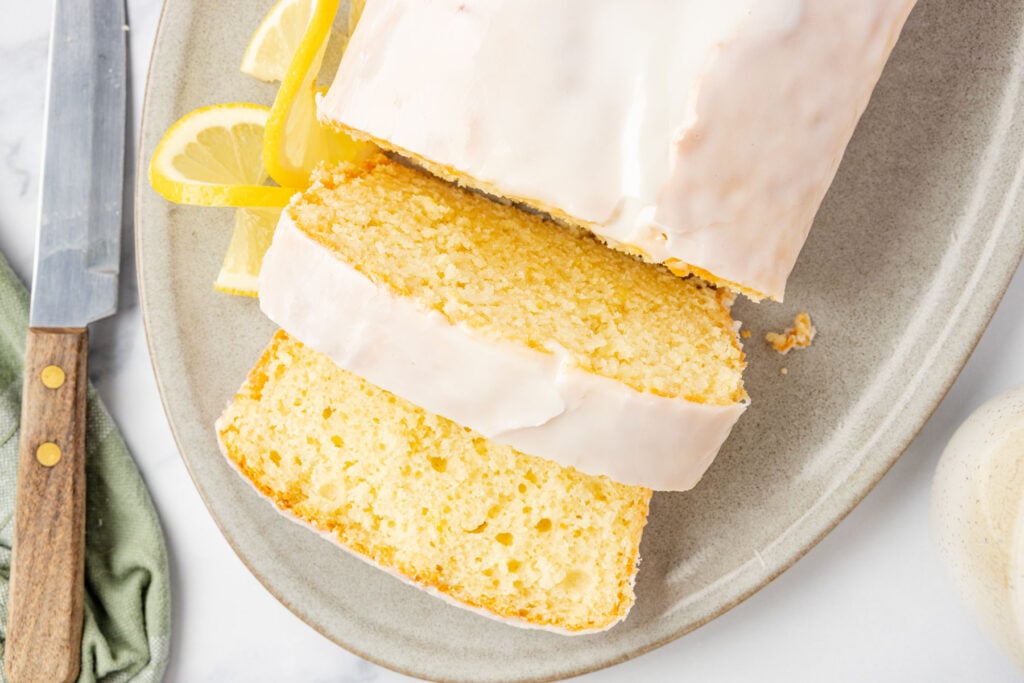 - In a medium mixing bowl, combine the powdered sugar, milk, and lemon juice. Pour the glaze over the loaf and allow it to set.