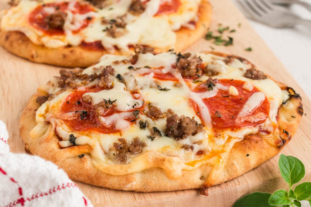 If you are looking for a dinner that is faster than takeout, these naan flatbread pizzas are an easy weeknight win. Using store-bought naan, you can make homemade pizza in under 30 minutes with barely any prep. Everyone can customize their own pizza with their favorite toppings, which makes this perfect for busy nights when the kids all want something different and you just need dinner to be done.